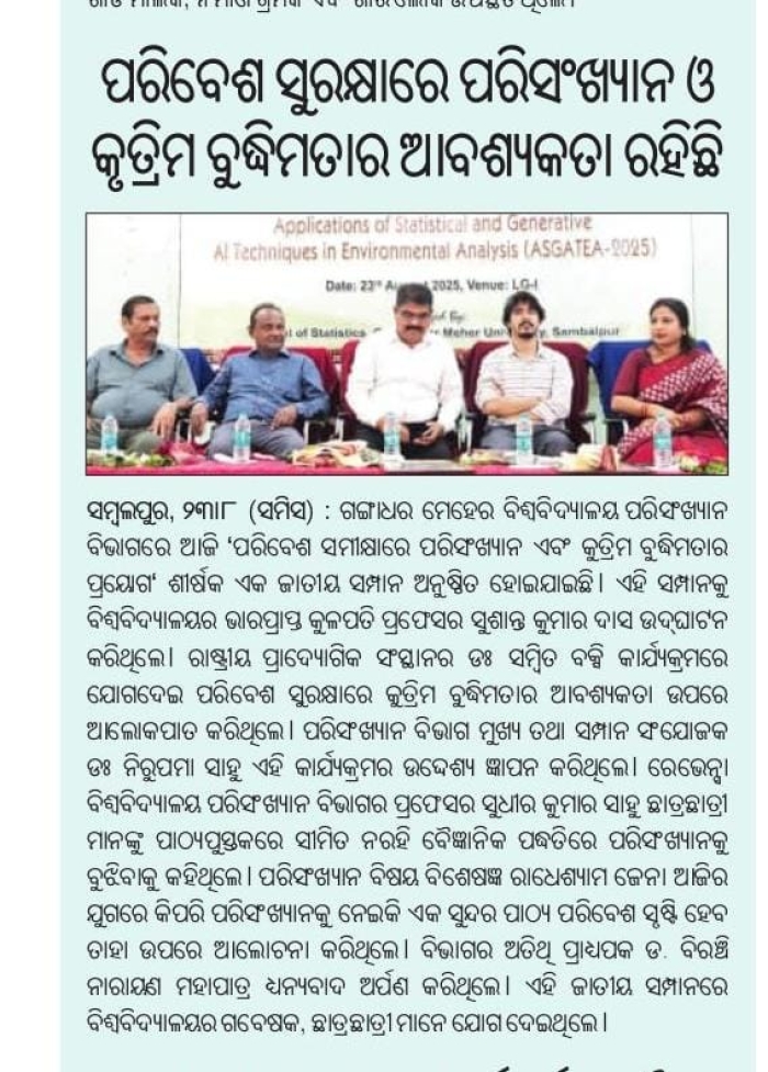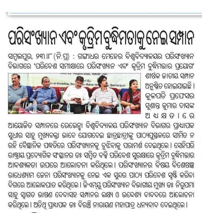 View ProfileSchool of Statistics of Gangadhar Meher University, Sambalpur, (Previously G.M. (Auto) College) Odisha started in the year 1973 with 32 seats for Intermediate Science and Arts and in the year 1975, 16 seats for the graduation classes was opened. Only in 1981, Honours in Statistics was introduced with 24 seats for both Science and Arts stream. Since then, this department has been catering to the needs of the students.The Department imparts a three-years BA/B.Sc.(Hons.),two years M.A/M.Sc.in Statistics as regular courses. The Department also offers Ph.D. Programmes in Statistics with specialisation in Survey Sampling, Operations Research,Applied Statistics and Econometrics. The faculty members have published books,good number of research articles and peer reviewed journals with National and International repute. The Alumni of this Department have been serving in maximum national level institute,industries in the country and abroad as well. The Course curriculum has been updated as per the requirements of U.G.C NET, Indian Statistical and Civil Cervices Exams, industry,health,finance and corporate sectors.